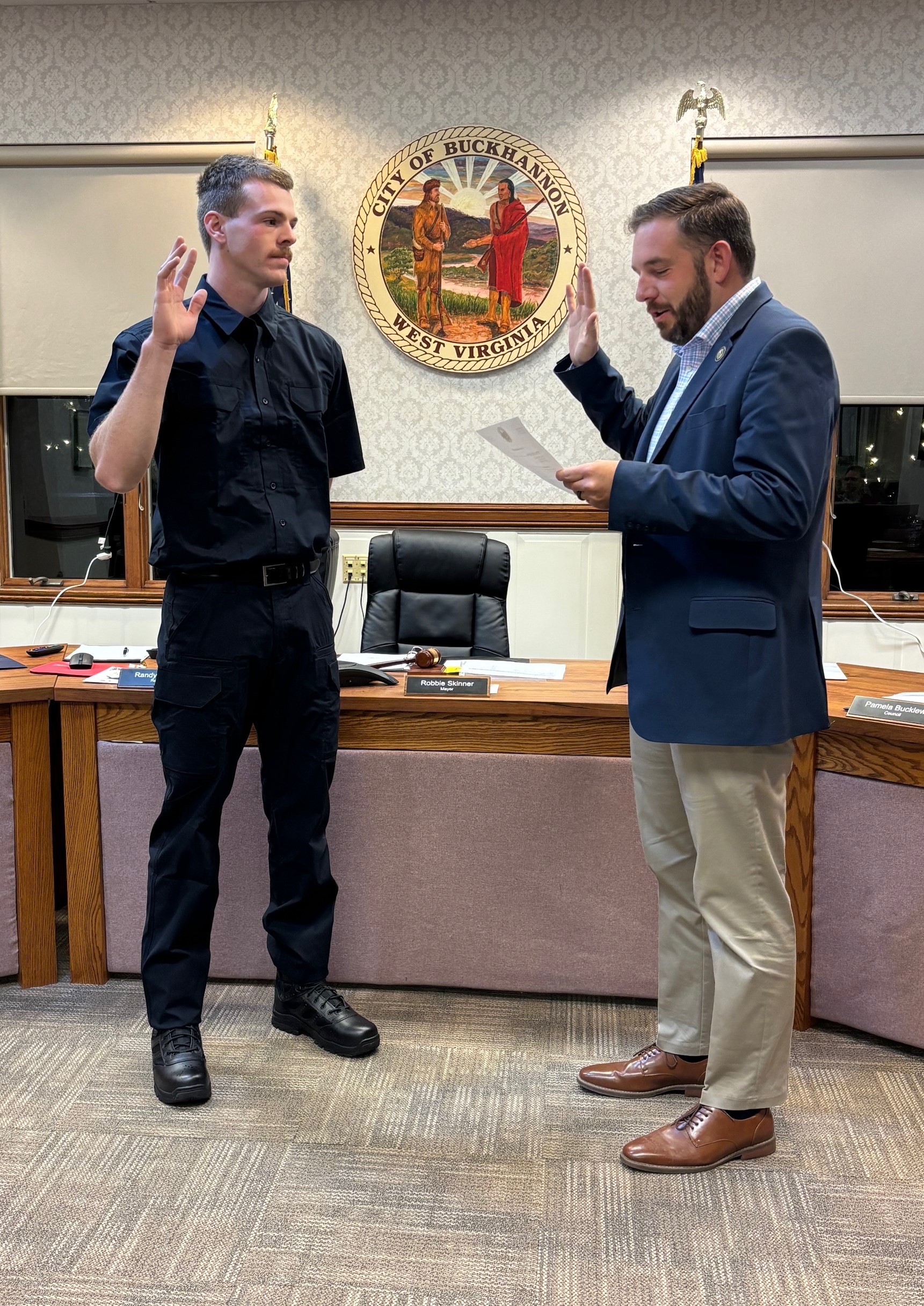 BUCKHANNON, WV: The City of Buckhannon is proud to announce the hiring of Joshua Bowers as the newest paid firefighter with the Buckhannon Fire Department. Bowers was officially sworn in during the December 18, 2025, Buckhannon City Council meeting, marking a historic milestone as the first probationary firefighter to complete the department’s newly established in‑house training academy at the Mudlick Road Training Facility.